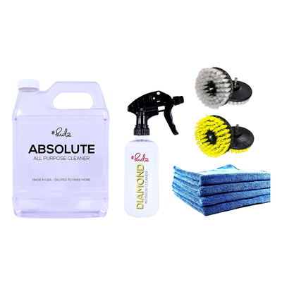 Spray Absolute, let dwell for 15 seconds, agitate with a soft brush, and wipe away dirt/stain to a clean finish. Perfect for Beginners and Professionals. Instructions Included.